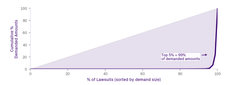 - The top 5% of cases account for 99% of total demanded amounts. Of course, demands are not settlements.